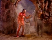 - The costume of the creature in the cave was that of the Metaluna Mutant from the film This Island Earth and the gloves and claws were from The Creature from the Black Lagoon.
