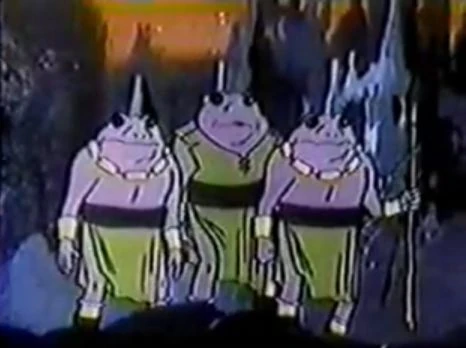The Throgs were a peaceful forest-dwelling people. They had limited technology and were not able to defend themselves against the Tyranos who created a colony on the Throg homeworld. When the Jupiter 2 landed on the Throg planet, the Throg befriended Craig Robinson and his crew and taught them about the Tyranos. Eventually, the crew of the Jupiter 2 managed to forge a peace between the Throgs and Tyranos.