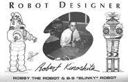 Robert Kinoshita He was born February 24, 1914. He died on December 7, 2014, at 100-years-old of age. He was an artist, art director, and set and production designer who worked in the American film and television industries from the 1950s through the early 1980s. Around April 1965, Irwin Allen hired Robert Kinoshita as the art director for the Lost in Space series. Of the many tasks to befall Kinoshita, two of them were to come up with a robot (which he nicknamed "Blinky") and to redesign the pilot film's Gemini XII space ship into what would become the Jupiter 2. This robot never had a real name—only the model number "B9." In the show he was referred to as "the Robot" or called by the generic name, "Robot." He was brought to life by the combination of actor Bob May and voice actor Dick Tufeld. Two of Kinoshita's famous robots appeared faceplate-to-faceplate in the Lost in Space episodes "War of the Robots" and "Condemned of Space", where Robby the Robot appeared as a guest robotoid and robot, respectively. Among his credits are art direction on four other well-known TV shows: Highway Patrol (1955–1959), Bat Masterson (1960–1961), Hawaii Five-O (1970–1971), and Kojak (1973–1974).