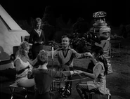 - All of the crew, at various times during this episode, are seen wearing new outfits, courtesy of biochemist Dr Maureen Robinson's skills with the intergalactic sewing machine.