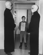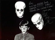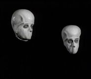 - The aliens seen here are based on the bubble-headed alien seen in the last moments in the Pilot episode. They have been modified to have no mouths and wear long, flowing robes, greatly improving their sinister appearance.