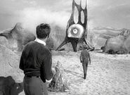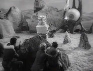 - The aliens' spaceship is perhaps the most original design of the series. Apparently lacking rocket motors or other conventional means of propulsion it looks truly non-human. Perhaps that's why it was not reused in the series as so many other props and models were.
