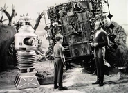 As Dr. Smith, the children, Debbie and the Robot look for ore, they happen across a maser teleportation machine left behind by the Taurons in "The Sky is Falling." Later, Penny and Debbie are caught in the beam when it activates, but no one is there to witness the event or do anything about it. Shortly afterwards, John discovers that Dr. Smith has the last of the supply the carbon tetrachloride which the family needs for food preservation. Smith, the Robot and Will go to look for Penny. They cannot find her but Smith orders the Robot to work the maser teleporter; Penny and Debbie reappear.