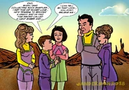 - Keith Taylor, who played one of the boys in the orphanage, would return as one of the "Space Hippies" in season 3's ''The Promised Planet'' (Frosh, Baby). He questions Will asking if Will knows what a stellar interferometer is. Will correctly responds "It's a device for measuring the diameter of stars" - a rare instance of LiS getting the science right. This real device was the brainchild of Albert Michelson, perhaps the first physicist who rigorously measured the speed of light.