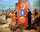 As this is going on, the Robot and Smith experiment further with the machine, resulting in Dr. Smith being clothed in a silly costume he cannot remove. Their actions also summon a spacecraft with two passengers. One of the men introduces himself as Mr. Zumdish, the complaints manager for the Intergalactic Department Store.