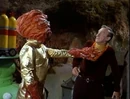 The next day Judy is rescued from a minefield by Keema, who blames the other alien for planting it. Penny runs to the other alien’s ship to ask if he was indeed responsible; he reveals himself to her—he is an ugly little frog-like creature—and he tells her that he had nothing to do with it. He accompanies Penny back to the Jupiter 2 where they meet Keema and an argument ensues. With war inevitable, Smith secretly takes the Robinsons’ weapons to Keema only to discover him in his hideous natural form. Keema reveals his deception to Smith who flees back to the Jupiter 2.