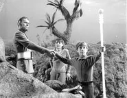 Will and Penny tell their parents what happened, and John and Maureen both realize the children are in danger and should be guarded at all times in case the Keeper tries to hypnotize them again. The Keeper attempts to lure the children out of the ship at night, but John makes sure they cannot leave their rooms. The next morning, the Keeper uses his staff to call to the children again, and they manage to sneak out to go to him. The Keeper nearly gets them onto his ship, but John and Don arrive in time to rescue them by breaking the Keeper’s staff. The Keeper decides the Robinsons are too troublesome to deal with any further, and says he will leave the next morning. He goes back to his ship and the Robinsons return to the Jupiter 2 thinking the ordeal is over. That night, however, Dr. Smith and the Robot sneak onto the Keeper’s ship in the attempt to steal it. Smith does not understand the controls, though, and accidentally opens all of the cages releasing the animals. When he realizes what he has done, he flees the ship interror.
