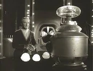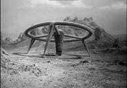 While Dr. Smith has the Robot do his chores for him, he suddenly becomes hypnotized by a strange humming sound and wanders away. He walks straight into a transparent cage and the door shuts behind him, trapping him inside. Will runs to help him, but a creature arrives and the boy must flee for his own safety. The monster pounds on Smith's cage; Smith comes out of his trance and screams in terror when he sees the creature. A noble-looking man appears and points his glowing staff at the monster. The monster quiets and walks into another cage nearby. Then both the man and the monster vanish.
