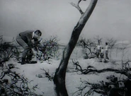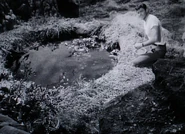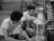 Further problems mount at camp when one of the fuel cells in the water purifier turns out to be defective. The next morning, John, Don and Will go looking for Smith after he has spent the night alone away from camp. Will is genuinely worried, and chides Don for making light of the fact that Dr. Smith may already be dead. Meanwhile Maureen has been testing the fruit and it turns out to be unsafe for consumption, although not poisonous. As she is reporting to John on the radio, Penny looks out from the Jupiter 2 to see that Debbie has more than doubled in size over night, although they find her personality unchanged.