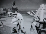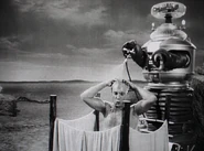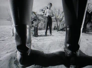 The men eventually find Dr. Smith, and are shocked to discover that he has grown to enormous size. Smith, however, remains unaware in the change in his stature, but reacts in shock when the others convince him. He begins recriminations and threatens to have his revenge on the Robinsons for what he still believes they deliberately did to him, but he is soon reduced to self-pity. Only when Maureen later arrives is he convinced to return to camp where he and the bloop must sleep outside the Jupiter 2. During the night a sudden rainstorm comes up and soaks the pair, restoring them to their normal size. The Robinsons cannot help but laugh when they see the wet and bedraggled Dr. Smith enter the ship, but in spite of his hurt feelings, at least their water shortage is over.