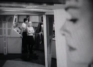 - After Dr. Smith returns to normal size, the Robinsons and Don are standing in the Jupiter II facing the airlock area with the freezing tubes behind them. Smith enters the elevator and descends, but the Robinsons are still facing the viewport, instead of turning around to look at him as he enters the elevator.