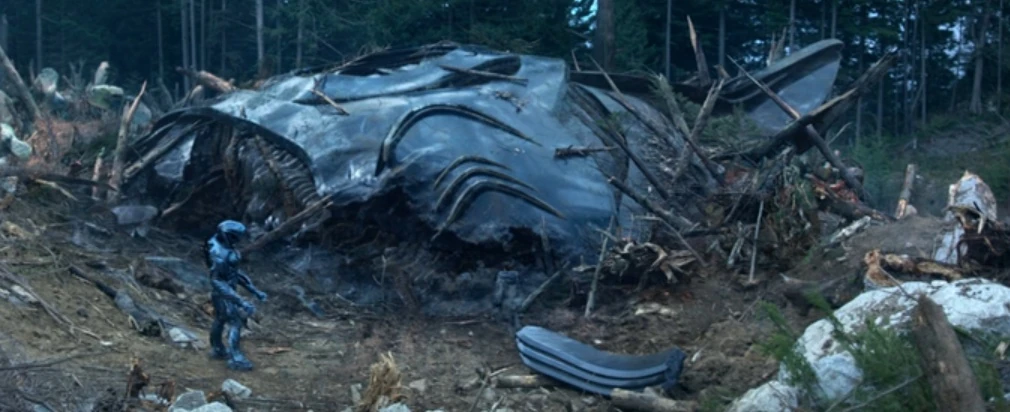 The Robot took the ship to attack The Resolute but it's unknown why is crashed on The Unknown planet. Somehow his or Scarecrow's Engine was activated.