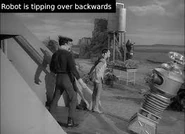 - In the first scene when John, Don, Penny and the Robot are entering the spaceship to escape the storm, we see the robot about to topple backwards as he goes up the ramp.