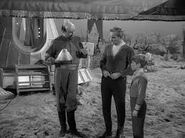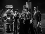 Doctor Smith takes the Robot back to camp with him, and everyone is very glad to see him. The very next day, the Trader shows up at the Jupiter 2 and says he has decided to collect early and that Smith must now go away with him to be sold at a galactic marketplace. Smith refuses, but the Trader uses the electronic contract to put the doctor into a trance. He lures Smith away to his spaceship, and, determined to help, Will follows. Will helps Smith escape and they run back to the Jupiter 2 with the Trader’s dogs in pursuit. When the Trader attempts to take Smith again, the Robot intervenes. He says that the Trader is unethical for tricking Smith, and reveals that the devastating storms were his doing. The Robot blasts the electronic contract and Smith is set free. The Trader and his dogs return to their spaceship and leave.