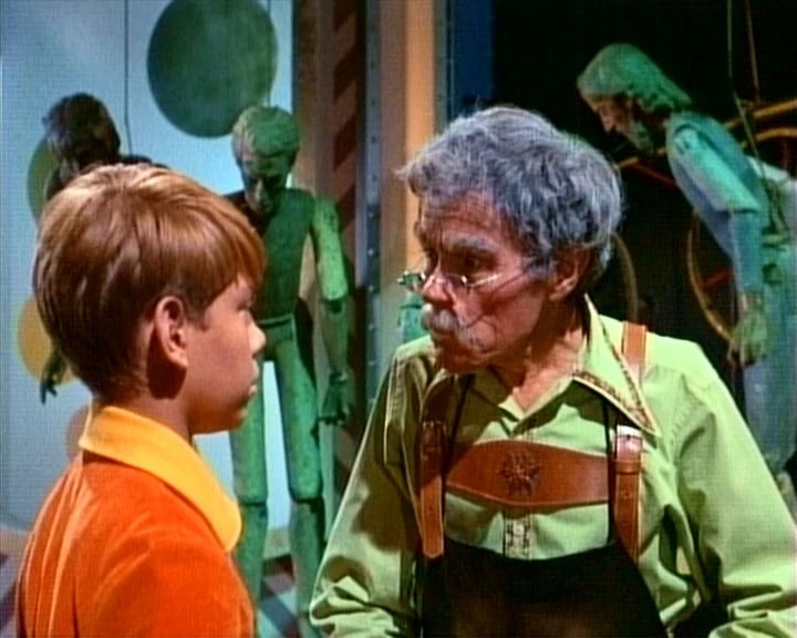 In O. M.’s workshop, Will and Smith flee from the toymaker, who sets a wind-up monster after them. They come across a boarded up window that opens onto the planet Earth. They try to break through, but are apprehended by the giant toy before they are able. O.M. realizes that Will is a real boy and hopes to train him as an apprentice, but he still sees no practical use for Dr. Smith.